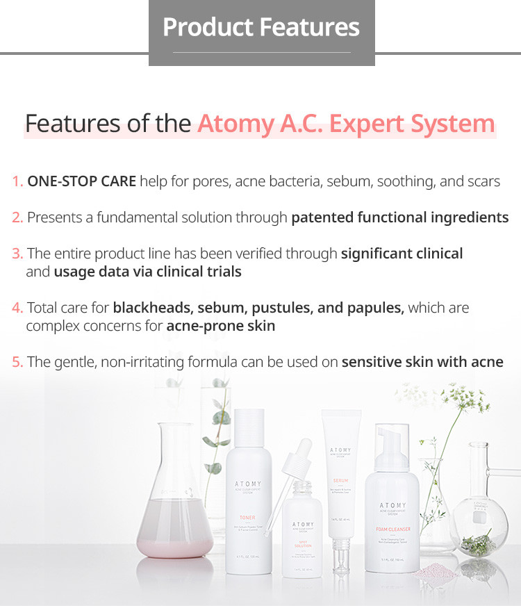 অ্যাটমির অ্যাকনে ক্লিয়ার এক্সপার্ট সিস্টেম সেট একটি সম্পূর্ণ স্কিনকেয়ার সমাধান যা ব্রণ নিরাময় এবং ত্বকের স্বাস্থ্য উন্নত করার জন্য ডিজাইন করা হয়েছে। এই সেটে ব্রণের মূল কারণ লক্ষ্য করে কার্যকর উপাদানের সাথে তৈরি বিভিন্ন পণ্য অন্তর্ভুক্ত আছে। এটি প্রদাহ হ্রাস, অতিরিক্ত তেল নিয়ন্ত্রণ এবং বন্ধ ছিদ্র পরিষ্কার করে, নতুন ব্রণের প্রতিরোধ করে। এই সেটটি ব্রণ চিকিৎসার জন্য একটি ভারসাম্যপূর্ণ পদ্ধতি প্রদান করে, যা পরিষ্কার করা, টোন করা এবং চিকিৎসা ধাপগুলি সমন্বয় করে। ব্রণপ্রবণ ত্বকের জন্য উপযুক্ত, এটি একটি নরম তবে কার্যকর রেজিমেন প্রদান করে যা পরিষ্কার, স্বাস্থ্যবান-দেখতে ত্বক অর্জনে সাহায্য করে।