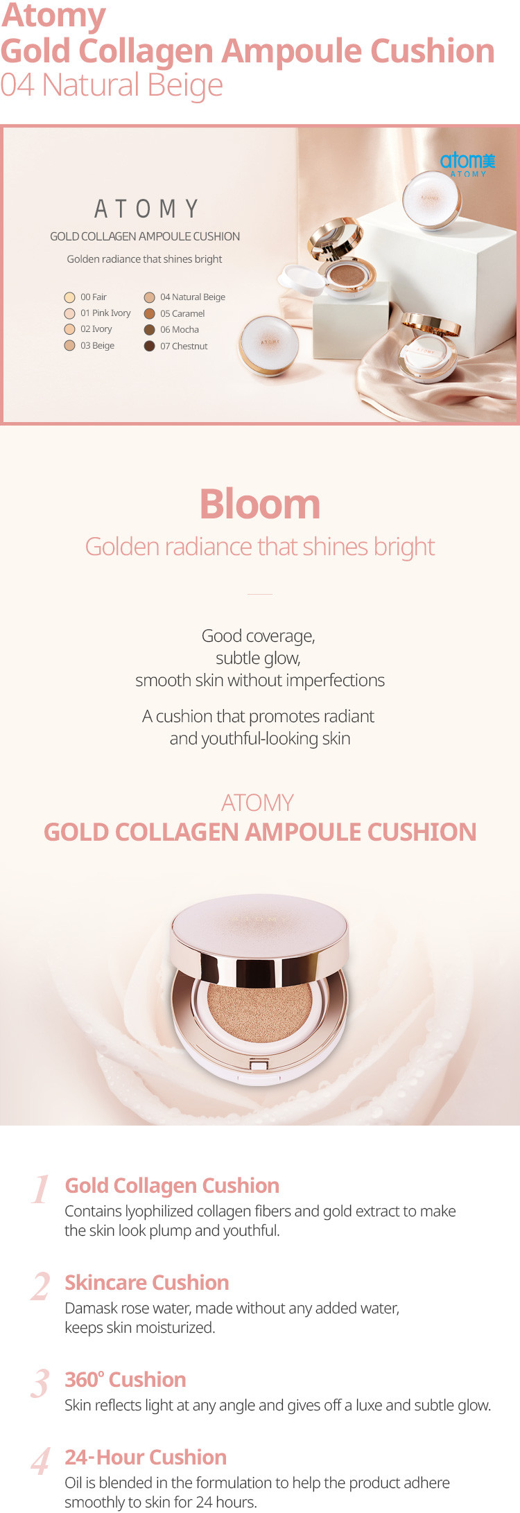 অ্যাটমির গোল্ড কোলাজেন অ্যাম্পুল কুশন ০৪ ন্যাচারাল বেজ একটি উচ্চ-মানের মেকআপ পণ্য, যা স্কিনকেয়ার এবং সৌন্দর্য চর্চাকে মিশ্রিত করে। গোল্ড কোলাজেন অ্যাম্পুলের সাথে সমৃদ্ধ, এটি শুধু চমৎকার কভারেজই প্রদান করে না, বরং ত্বককেও পুষ্টি জোগায়। এই কুশন ফাউন্ডেশনটি প্রাকৃতিক বেজ চেহারা পেতে আদর্শ, যা একটি মসৃণ এবং সমান ত্বকের স্বর নিশ্চিত করে। পণ্যটি মার্জিতভাবে প্যাকেজ করা এবং প্রয়োগের জন্য সহজ ডিজাইন করা হয়েছে, যা প্রতিদিনের ব্যবহারের জন্য উপযুক্ত। যারা তাদের ত্বকের প্রাকৃতিক সৌন্দর্য বাড়াতে এবং এটি স্বাস্থ্যবান এবং পুষ্ট রাখতে চান, তাদের জন্য এটি একটি আদর্শ পছন্দ।